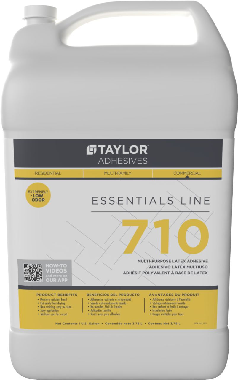 710 is designed for a variety of applications, including: applying seaming tapes, joining padding, sealing raw edges, securing binding, patching carpet, replacing damaged nap and reinforcing seams and weak backings. This water-resistant, easy-to-spread synthetic latex and hydrocarbon resin blend dries extremely fast, starts white, and dries to a translucent amber.